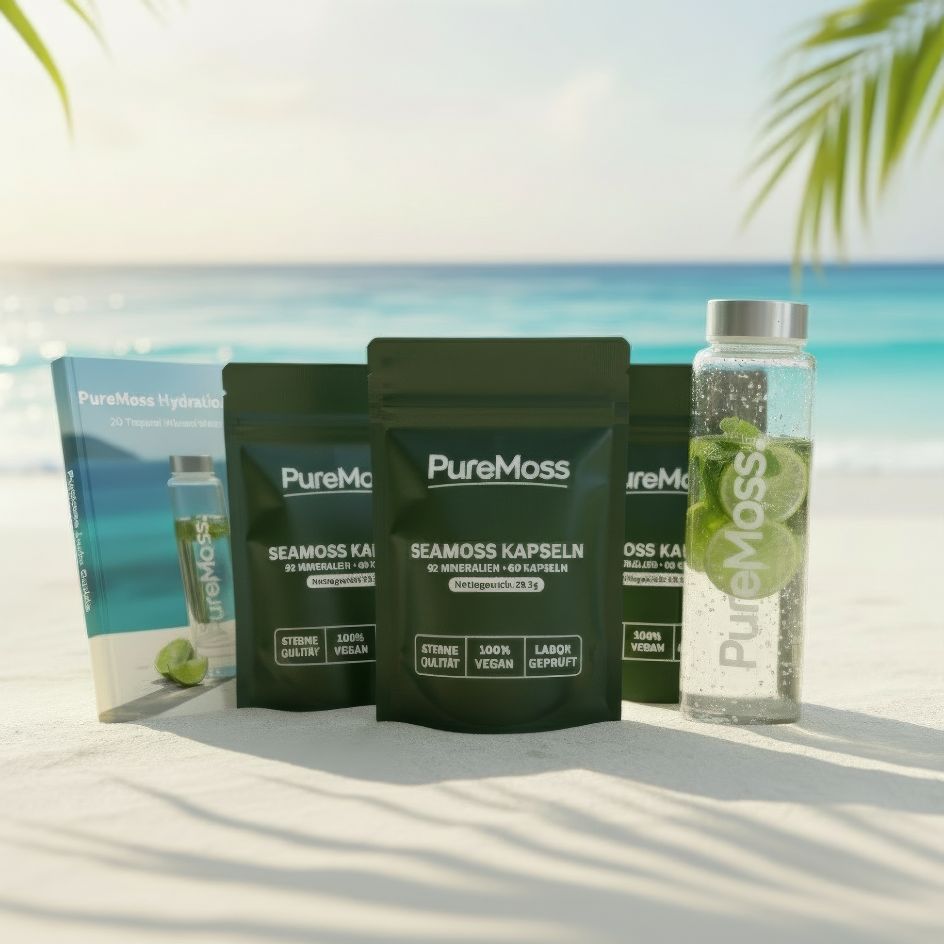 Tages Dosis von 2 Seamoss Kapseln mit ausreichend Wasser schlucken, idealerweise morgens zu einer Mahlzeit. Die regelmäßige Einnahme unterstützt den Körper mit 92 essentiellen Mineralien, stärkt das Immunsystem, fördert die Verdauung und kann bei Frauen den Hormonhaushalt sowie bei Männern die Leistungsfähigkeit positiv beeinflussen.